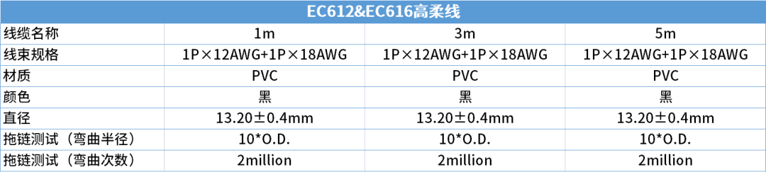 我们配置了3种不同的电缆类型:其中,1m,适用于AGV、复合机器人,以及对空间要求密集的场景。