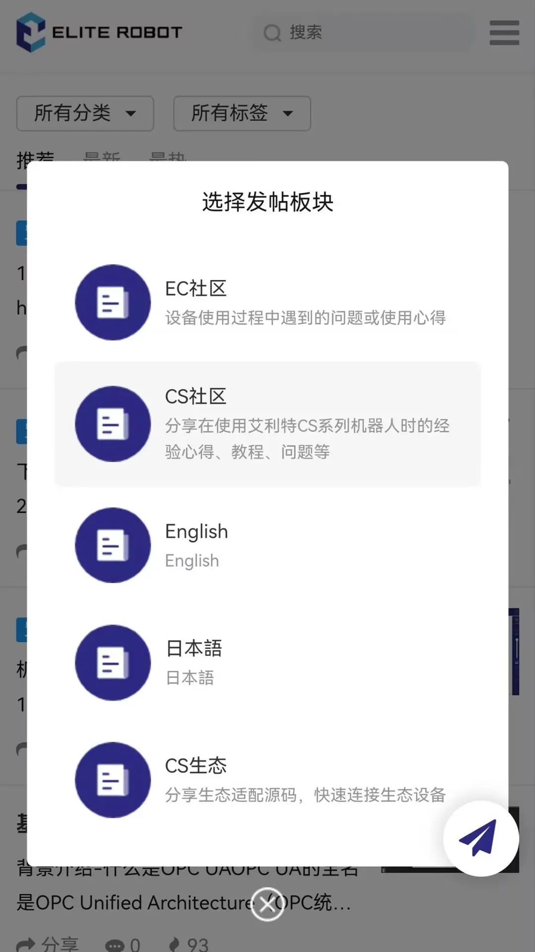 点击论坛界面右下角“纸飞机”图标,即可一键发帖
