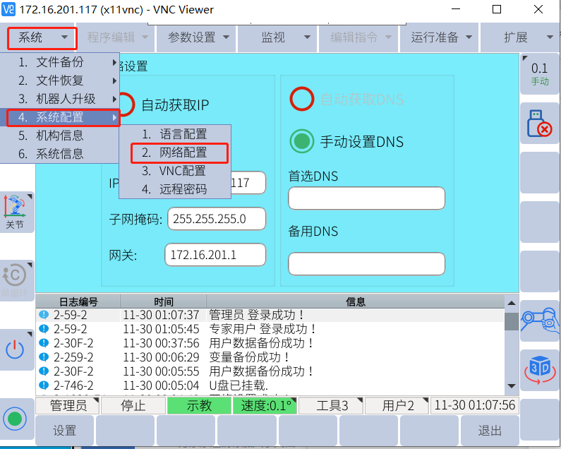 常用参数配置包括:IP,负载,重心,安装方式,机械零点确定,当我们拿到新机时需要做以上配置,确保机器人正常使用。