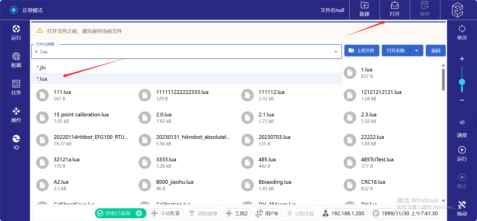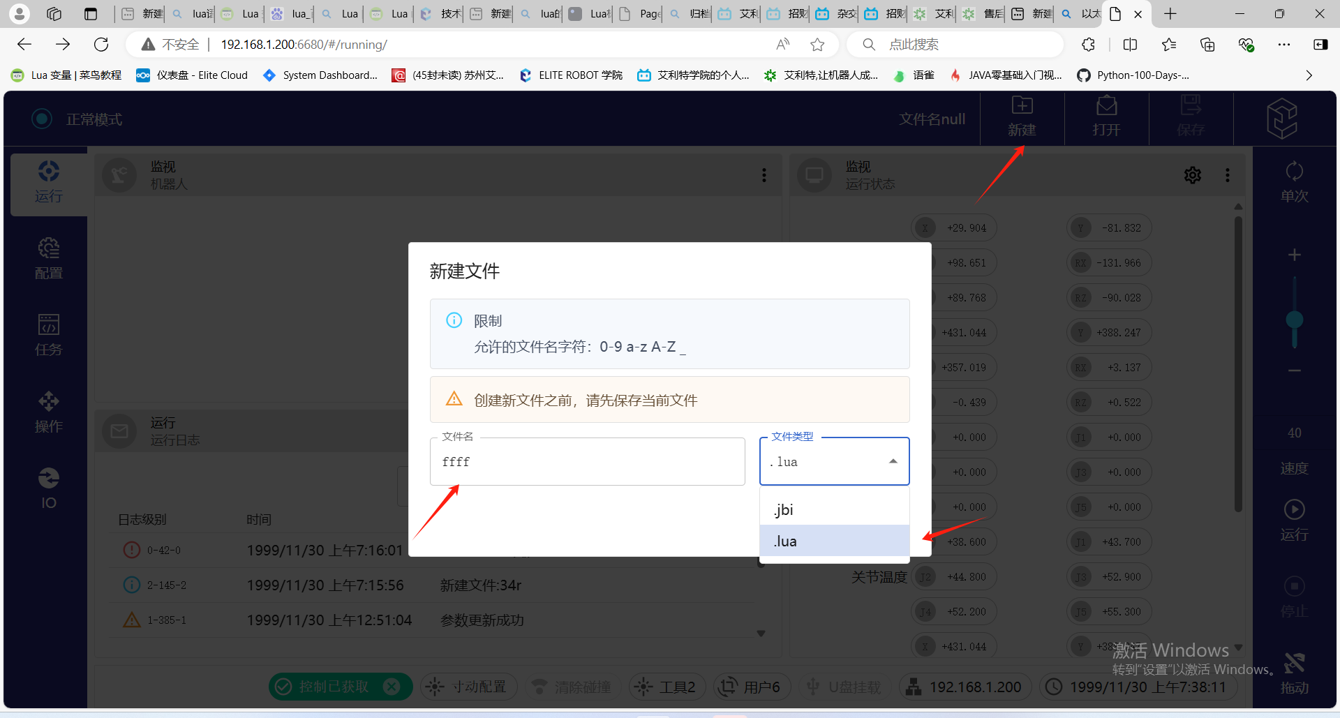 2.  点击新建,选着LUA文件,命名文件后即可编程LUA。