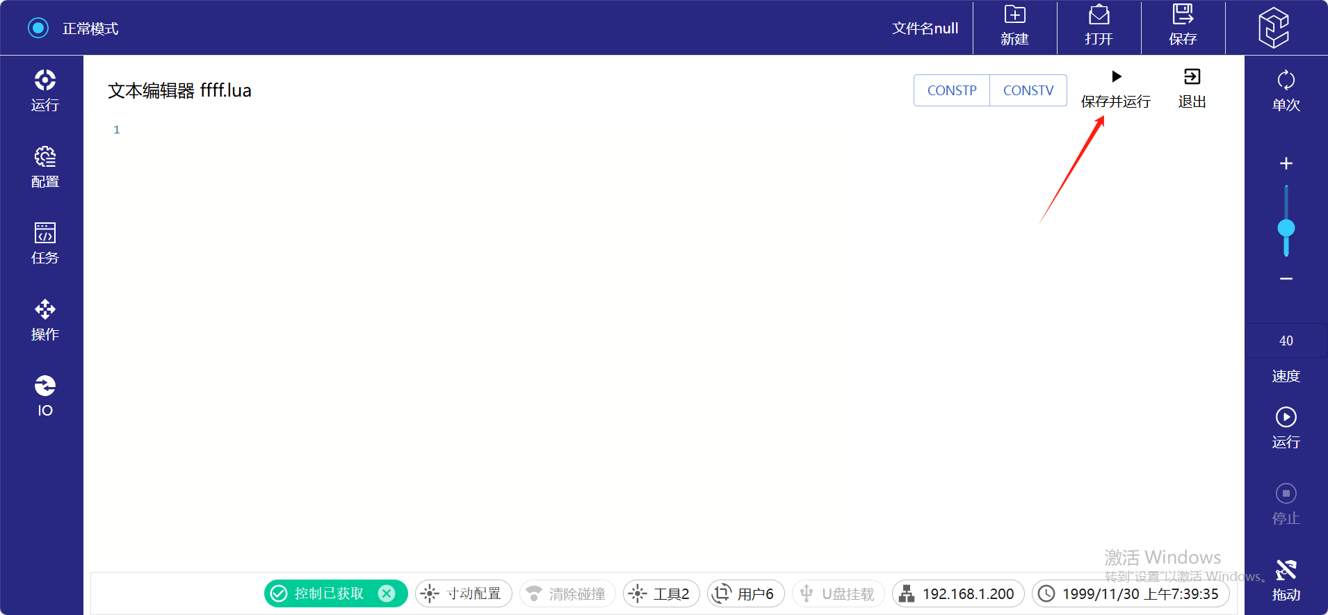 3.  程序编辑好后可以点击保存并运行进行测试。