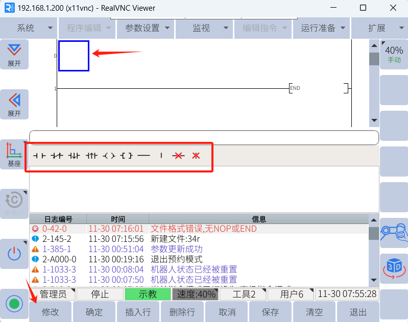 3.在空白区域点击修改即可出现PLC指令进行编写