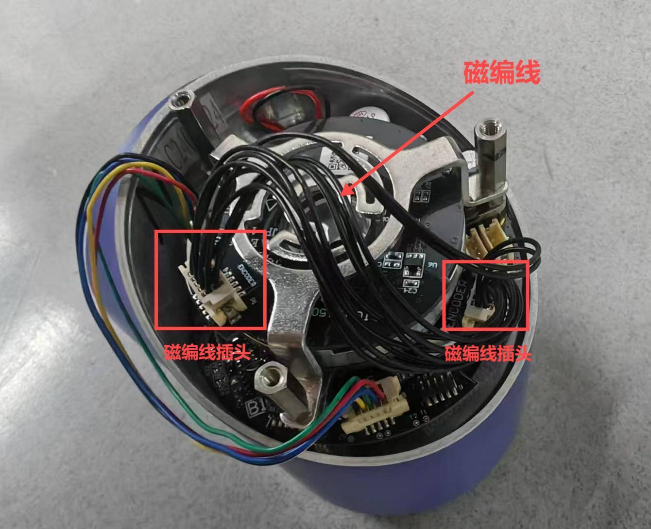 机械臂关机断电,拆下报警关节端盖,检测磁编码器线缆是否脱落,以及线缆是否断裂或者被挤压变形。如果有上述情况,先重新插拔磁编线建议更换磁编线。如果无上述情况,请进行下一步排查。