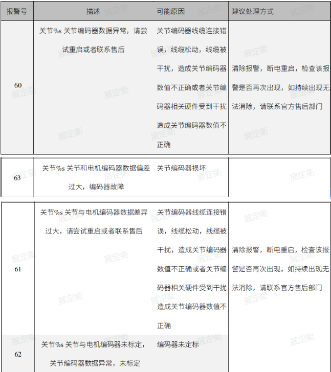 2.  报警代码:61,关节与电机编码器数据差异过大