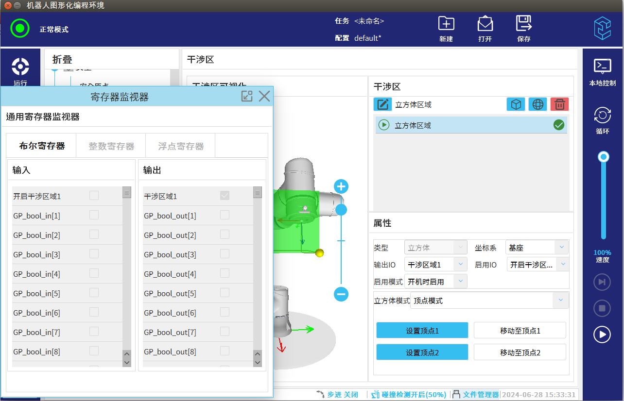 (2):开机时启用:无论程序是否处于自动任务 只要进入到干涉区都会自动触发绑定信号