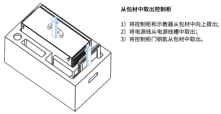 3.  安装机器人控制柜、示教器和连接线缆。