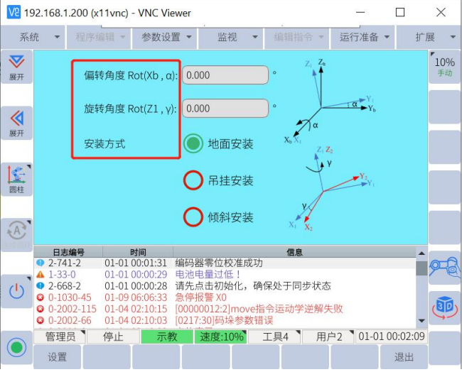 4.  如果没有使用正确的安装方式,拖动示教功能将无法正常工作,机器人可能会向无法预测的方向运动。