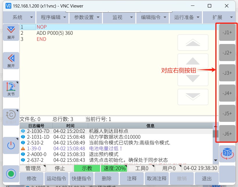 1.  单步:每按一次运行按钮仅执行一行指令,不执行非运动指令。