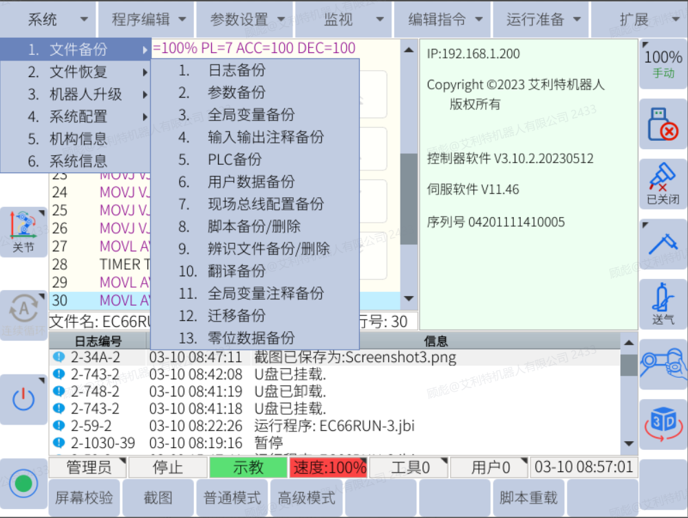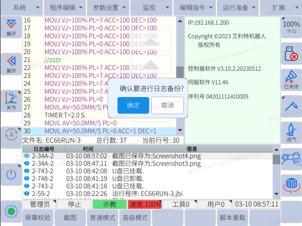 2.1机器人运行日志备份(基于 V3.10.2 系统版本)