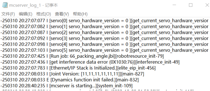 5、  日志时间遵循机器人示教器上的时间。