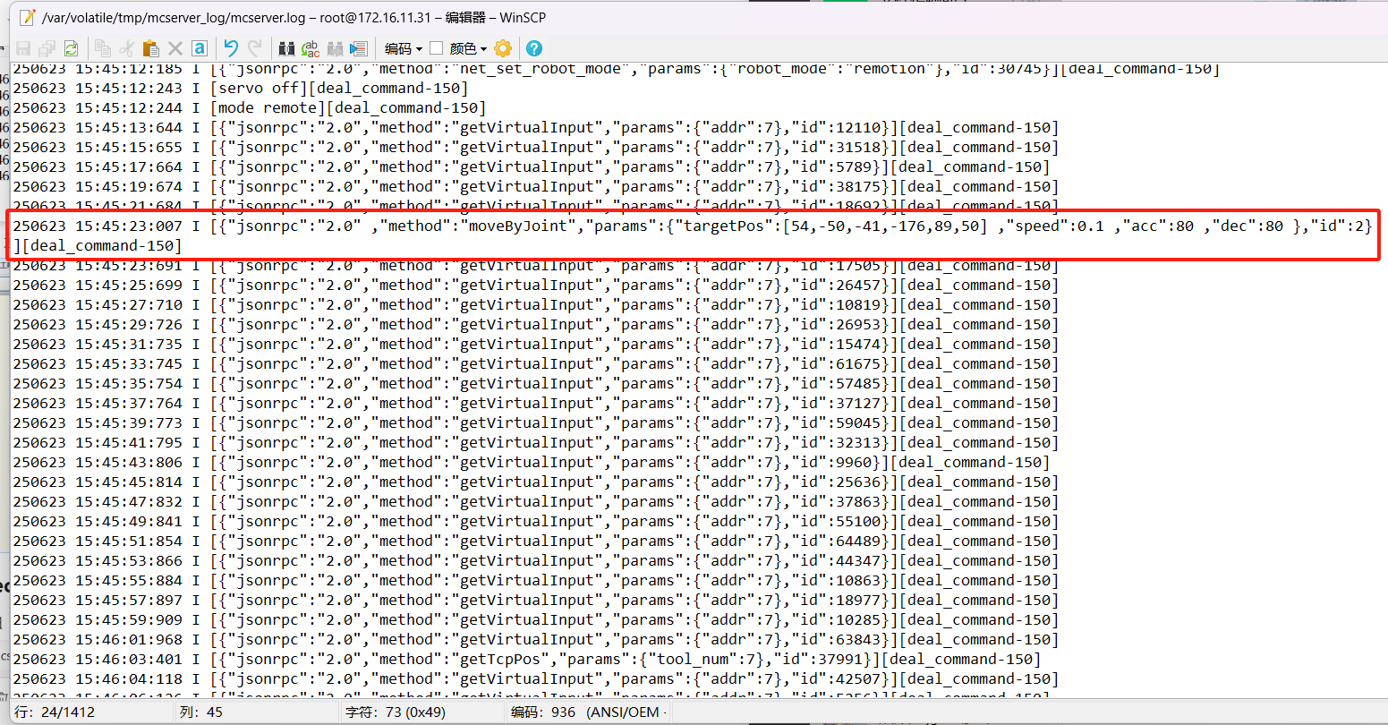 3、  该日志通过缓存刷新,如果上位机发送指令太少则不会在日志中记录,缓存到一定数量才会加载到日志中。(可通过登录网页版示教器增加缓存量,网页版示教器每 2秒自动缓存一条日志;也可上位机多发一些指令增加缓存量)