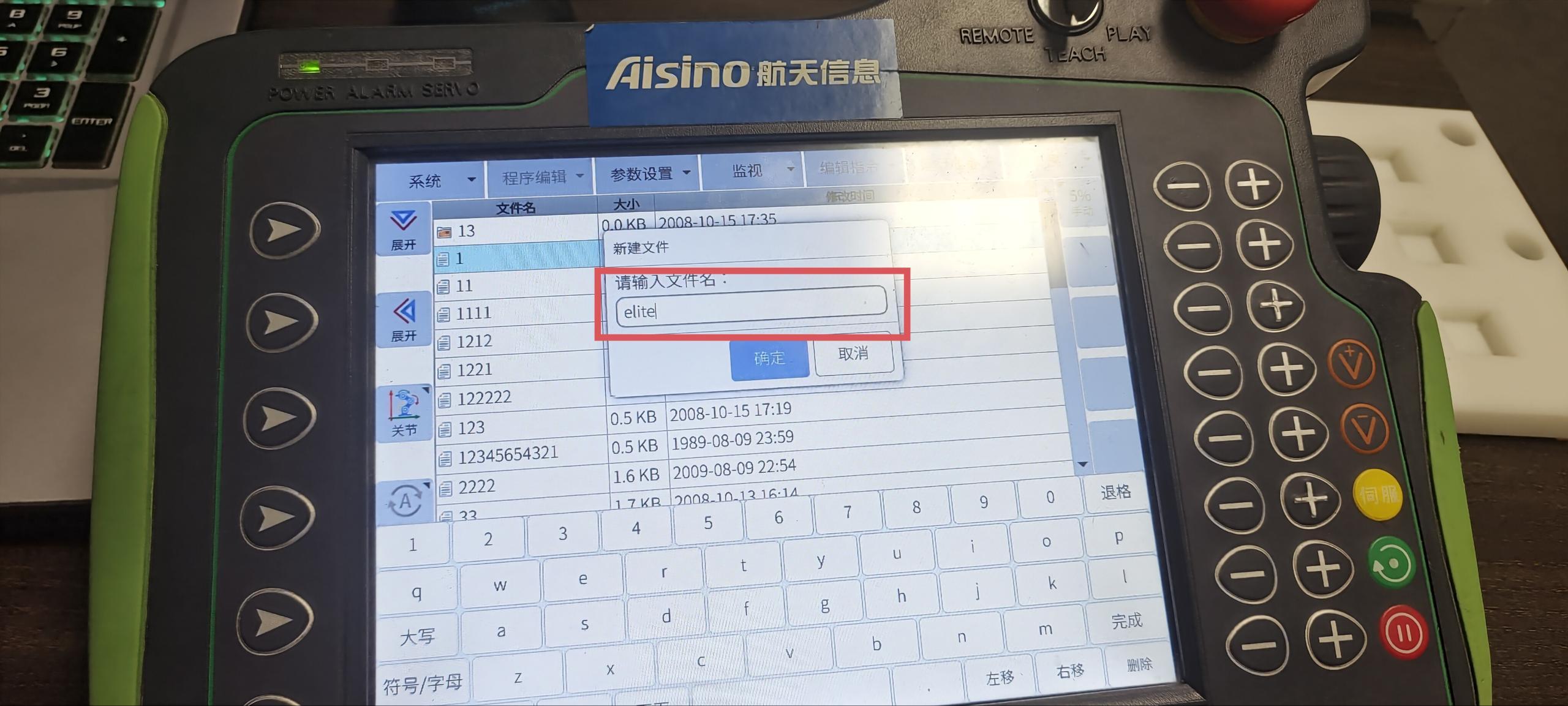 在示教器主页面下点击左下角新建-文件-输入文件名-选择并打开