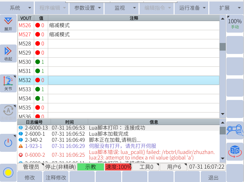 1. M0-M527,M1472-M1535为系统使用,只能读取状态,通过示教器可