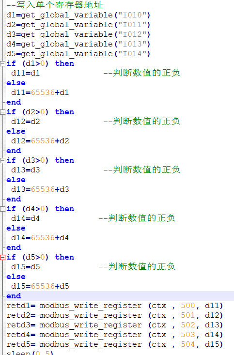 读取400开始的5个寄存器,分别将寄存器数值存入全局变量I000-I004中