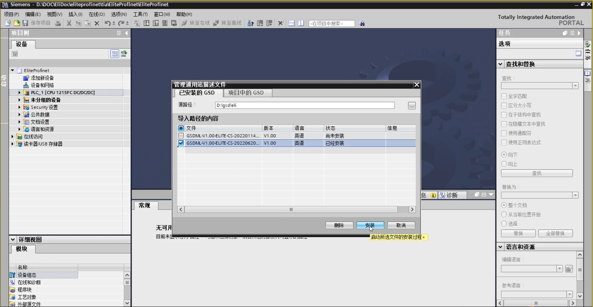 请登录企业微信-微盘查找名称为:GSDML-V1.00-ELITE-CS-20220620.xml 的文件,如果是外部人员请咨询leyu.乐鱼(中国)工程师索取。