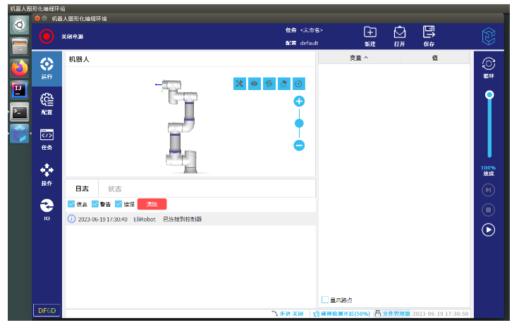 在没有机器人实物时我们可以通过虚拟机把我们的程序先编写出来,这样在项目现场时就不需要再用时间去进行程序的编写了,可以加快项目进度。同时在不方便使用示教器实物查看程序时我们也可以通过虚拟机去查看程序。在验证一些功能,做一些测试时同样也可以在虚拟机上进行。