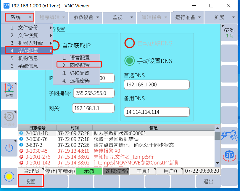 示教器中查看对应的M920、M922、M924分别状态为1,读取线圈功能及指令正常
