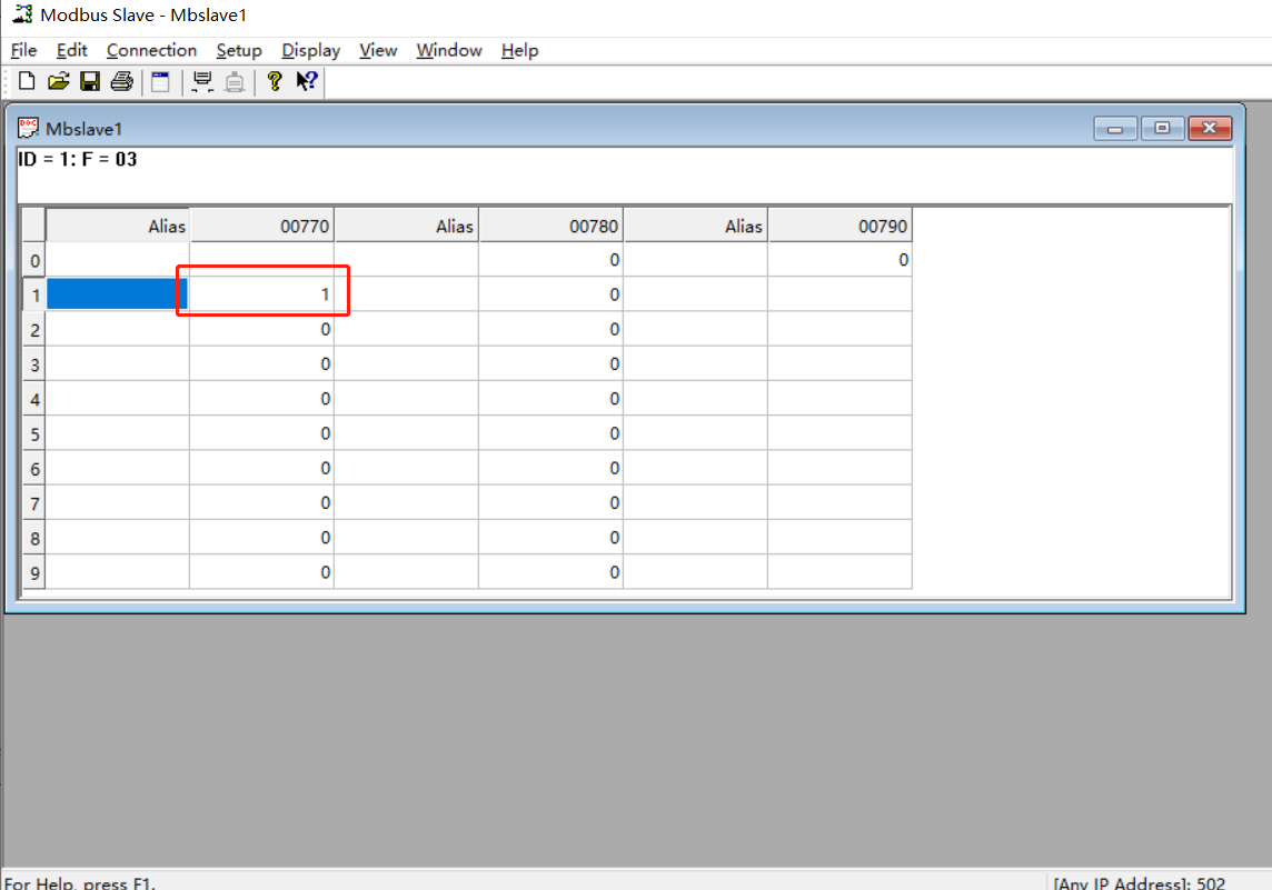 助手端将400寄存器设置为123,401寄存器设置为23,402寄存器设置为-345,403寄存器设置为-876,404寄存器设置为2345